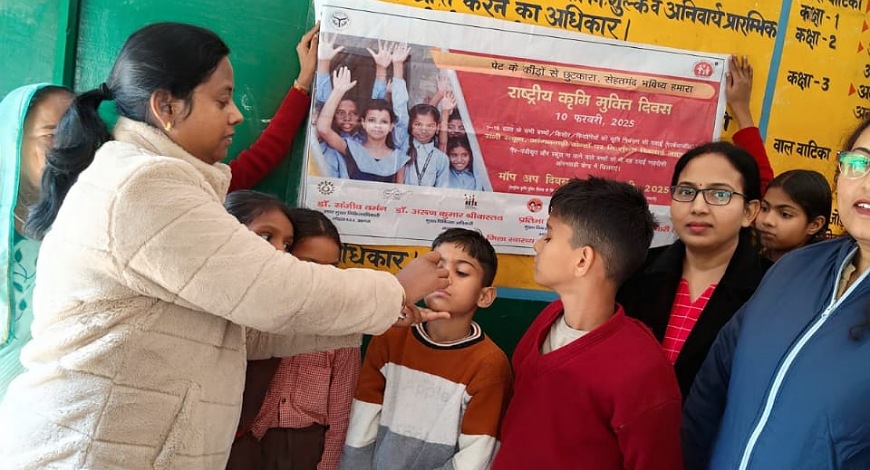 उत्तर प्रदेश के सभी जिलों में सोमवार को राष्ट्रीय क्रमिक मुक्ति दिवस मनाया गया। इसके तहत आंगनबाड़ी केंद्रों, स्कूल और कॉलेजों के बच्चों को एल्बेंडाजोल की गोलियां खिलाई गईं। इधर जनपद आगरा में राष्ट्रीय क्रमिक मुक्ति दिवस पर स्वास्थ्य विभाग और बाल विकास सेवा एवं पुष्टाहार विभाग की टीमें बच्चों को गोलियां खिलाते हुए नजर आईं। मुख्य चिकित्सा अधिकारी डॉ. अरुण श्रीवास्तव के निर्देशन में राष्ट्रीय कृमि मुक्ति अभियान के नोडल अधिकारी डॉ. संजीव वर्मन और विकास खंड बरौली अहीर के ब्लॉक प्रमुख काका उत्तम सिंह ने स्कूल की छात्र-छात्राओं हिमांशी, आनंद, ओम मुदगल और तमन्ना को एल्बेंडाजोल की दवा खिलाकर कृमि मुक्ति दिवस का शुभारंभ किया। सोमवार को आगरा के स्कूलों और आंगनबाड़ी केंद्रों पर 15.1 लाख बच्चों ने दवा की खुराक ली। नोडल अधिकारी ने उद्घाटन के बाद कहा कि पेट में कृमि संक्रमण को रोकने के लिए बच्चों व किशोर-किशोरियों को छह-छह माह के अंतराल पर वर्ष में दो बार पेट से कीड़े निकालने की दवा खिलाना आवश्यक है। कृमि मुक्ति अभियान एक सार्वजनिक स्वास्थ्य पहल है, जिसका उद्देश्य बच्चों में कृमि संक्रमण को रोकना और नियंत्रित करना है। एसीएमओ की मौजूदगी में विद्यालय में 510 विद्यार्थियों को दवा खिलाई गई। जिले के सभी ब्लॉकों के 5314 स्कूलों और 2988 आंगनबाड़ी केंद्रों पर एक से 19 वर्ष आयु वर्ग के लाभार्थियों को एल्बेंडाजोल की दवा खिलाई गई। डॉ. संजीव बर्मन ने बताया कि राष्ट्रीय कृमि मुक्ति दिवस का उद्देश्य बच्चों में कृमि संक्रमण को समाप्त करना है। कृमि संक्रमण से बच्चों के स्वास्थ्य पर नकारात्मक प्रभाव पड़ता है, जिससे उनका विकास प्रभावित होता है। इस अभियान में एवीडेंस एक्शन संस्था के जिला समन्वयक शाहिद खान सहयोग कर रहे हैं। अभियान के दौरान 23.18 लाख लाभार्थियों को दवा खिलाने का लक्ष्य है।